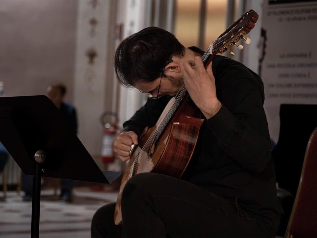 ore 19:15 Il Concerto serale sarà tenuto da Ganesh Del Vescovo che eseguirà musiche di Torroba, Villa-Lobos e opere originali dell’artista, alcune in prima esecuzione assoluta.In apertura prima esecuzione assoluta di Nitàuse di Niccolò Chiaramonti vincitore del Concorso di Composizione Alvaro Company 2024. Il Concerto premio dell’Iter Vocis Duo: Dafne Colombo, soprano e Yuri Santangelo, chitarra, vincitori del Concorso Alvaro Company 2024 categoria E, è rimandato al 2026 per problemi di salute di Yuri Santangelo.